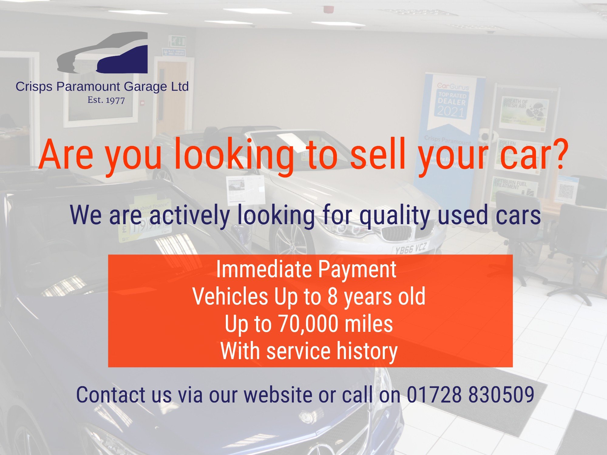 Crisps Paramount Garage Ltd acts as a credit broker and not a lender. We are authorised and regulated by the Financial Conduct Authority. FCA No: 687457